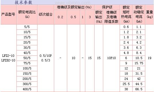 LFZ2-10型电流互感器技术参数