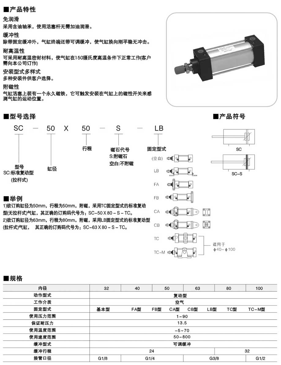 产品标题:SC系列气缸,气动元件